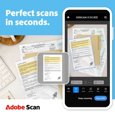 Adobe Scan آپ کے موبائل ڈیوائس کو ایک طاقتور پورٹیبل اسکینر اور پی ڈی ایف تخلیق کار میں بدل دیتا ہے۔ اب آپ کاغذ کے کسی بھی دستاویز کو آسانی سے کرکرا، واضح ڈیجیٹل فائل میں تبدیل کر سکتے ہیں۔ یہ ایپ صفحات پر موجود جھکاؤ یا خمیدگی کو خود بخود درست کرتی ہے، جس سے آپ کے اسکین شدہ دستاویزات ہمیشہ صاف اور پیشہ ورانہ نظر آتے ہیں – کوئی اضافی محنت درکار نہیں۔ Adobe Scan کے ساتھ، آپ کا فون صرف ایک آلہ نہیں بلکہ ایک مکمل دفتر بن جاتا ہے، جو آپ کے دستاویزات کو بہترین شکل میں محفوظ کرتا ہے۔