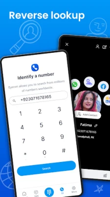 Eyecon کی نمایاں خصوصیات میں کالر آئی ڈی کا فل اسکرین ویو شامل ہے، جہاں آپ کال کرنے والے کی تصویر پوری اسکرین پر واضح طور پر دیکھ سکتے ہیں۔ یہ غیر مطلوب اور اسپام کالز کے ساتھ ساتھ ایس ایم ایس کو بھی مؤثر طریقے سے بلاک کرتا ہے، تاکہ آپ پریشانی سے بچ سکیں۔ Eyecon آپ کی ایڈریس بک کو ایک بصری اور دلچسپ گیلری میں بدل دیتا ہے، جہاں ہر رابطہ ایک تصویر کے ساتھ زندہ ہوتا ہے۔ یہ آپ کے ہر رابطے کے لیے ترجیحی مواصلاتی طریقوں کو یاد رکھتا ہے اور آپ کو ان کے ڈیجیٹل پروفائلز، جیسے کہ فیس بک، تک رسائی فراہم کرکے ان کی ڈیجیٹل دنیا میں گہرائی سے جانے کا موقع دیتا ہے۔ مزید برآں، آپ ایک ہی پلیٹ فارم سے واٹس ایپ، فیس بک، اور ایس ایم ایس کے ذریعے پیغامات بھیج سکتے ہیں یا کال شروع کر سکتے ہیں۔ Eyecon کی پریمیم خصوصیات کے ساتھ، اشتہار سے پاک تجربے اور لامحدود ریورس لُک اپس کا فائدہ اٹھائیں۔
