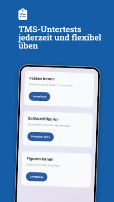 یہ پلیٹ فارم ٹی ایم ایس کے کلیدی ذیلی ٹیسٹوں پر خصوصی توجہ دیتا ہے، جن میں آپ کی مہارت کو بہتر بنانے کے لیے مختلف مشقیں اور ٹولز شامل ہیں۔ آپ 'نلکی نما اشکال' (Schlauchfiguren) کو سمجھنے اور ان میں درست اشیاء کی شناخت کرنے میں ماہر بن سکتے ہیں، جو کہ ٹی ایم ایس کے تیسرے ذیلی ٹیسٹ کا ایک اہم حصہ ہے۔ مزید برآں، 'اشکال کو یاد کرنے' (Figuren lernen) اور 'حقائق کو حفظ کرنے' (Fakten lernen) کے لیے تیار کردہ ماڈیولز آپ کی بصری یادداشت اور معلومات کے حصول کی صلاحیت کو غیر معمولی حد تک بڑھا دیں گے، جو بالترتیب چھٹے اور ساتویں ذیلی ٹیسٹ کی بنیادی ضرورت ہے۔ ہر ماڈیول کو اس طرح ترتیب دیا گیا ہے کہ سیکھنے کا عمل دلچسپ اور نتیجہ خیز ہو۔
