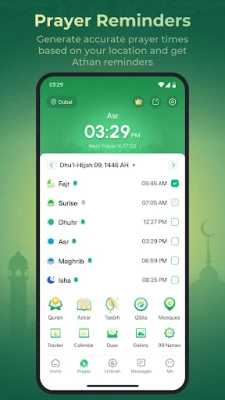 اپنے اسلامی تقویم (ہجری کیلنڈر) کے ساتھ، WeMuslim آپ کو مستقبل کی نمازوں کے اوقات دیکھنے اور اپنی یومیہ نمازوں کا ریکارڈ رکھنے کی سہولت دیتا ہے۔ مزید برآں، احادیث اور قرآن سے ماخوذ اذکار اور دعاؤں کا ایک وسیع ذخیرہ موجود ہے جسے آپ آسانی سے پڑھ اور دہرا سکتے ہیں۔ اپنی تسبیح کو شمار کرنے کے لیے، آپ کو ایک الیکٹرانک تسبیح اور دعاؤں کی تعداد گننے کا کاؤنٹر بھی ملے گا۔ حج و عمرہ کے مبارک سفر کی رہنمائی بھی WeMuslim کا حصہ ہے، جو رسومات کی مفصل وضاحت اور ہدایات فراہم کرتی ہے تاکہ آپ اپنے سفر کو بہترین طریقے سے مکمل کر سکیں۔